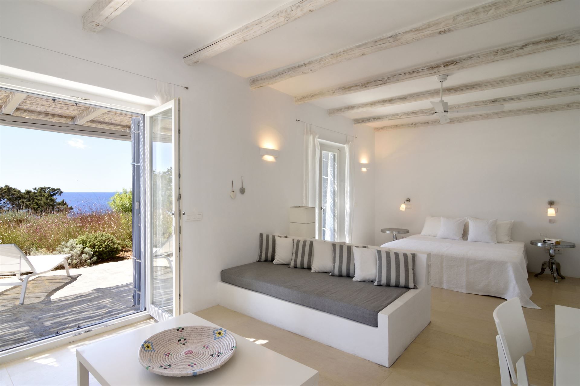 Following, the villa comprises six bedrooms, each with its own ensuite bathroom, offering ample space and privacy for all guests. Also, on the pool level, you will find four elegantly designed double rooms, each with a king-size or double bed, air conditioning, ceiling fans, and stunning sea views. Additionally, two guest houses on the lower ground level provide further accommodation with private entrances, kitchenettes, and terrace access.