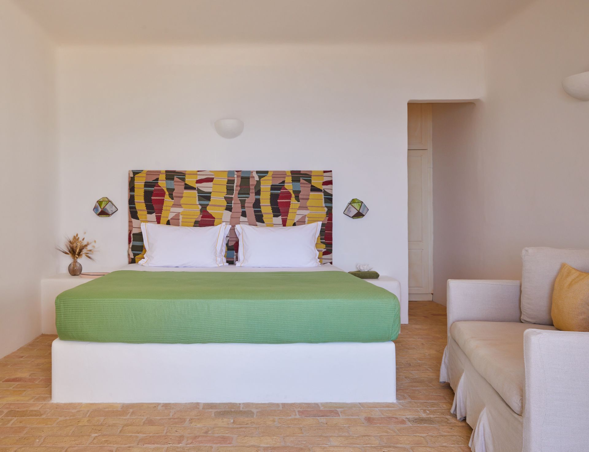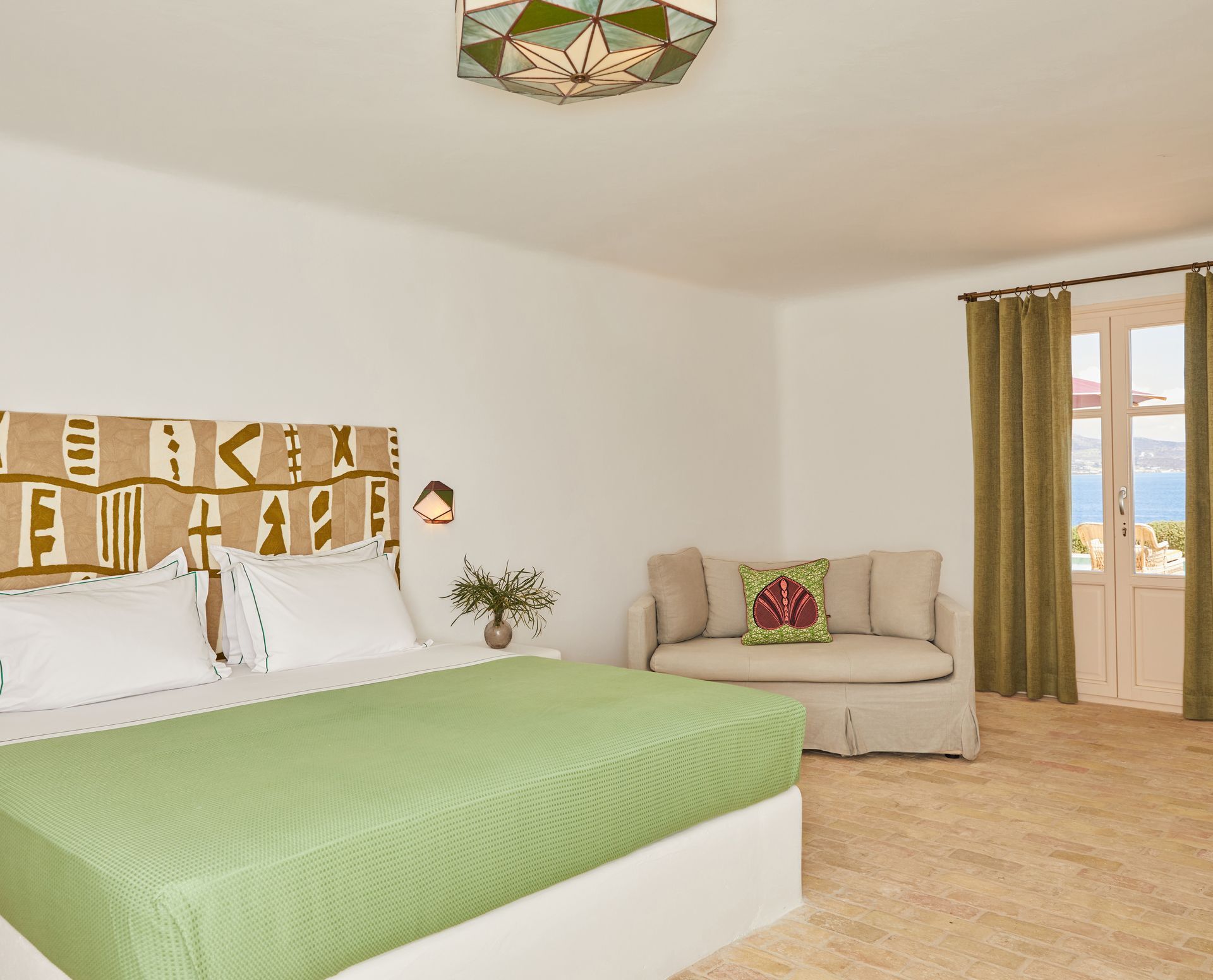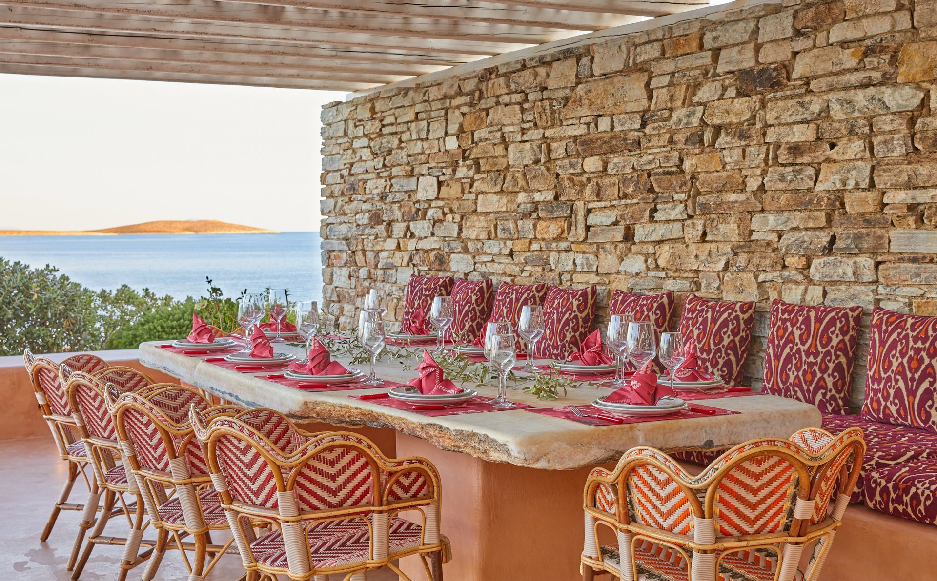 Inside, Aqua Bliss emphasizes comfort and understated elegance. Spacious living and dining areas flow seamlessly to the terraces, allowing effortless indoor-outdoor living. Each of the seven bedrooms is thoughtfully designed for privacy and restfulness, featuring an en-suite bathroom and tasteful Cycladic-inspired décor.