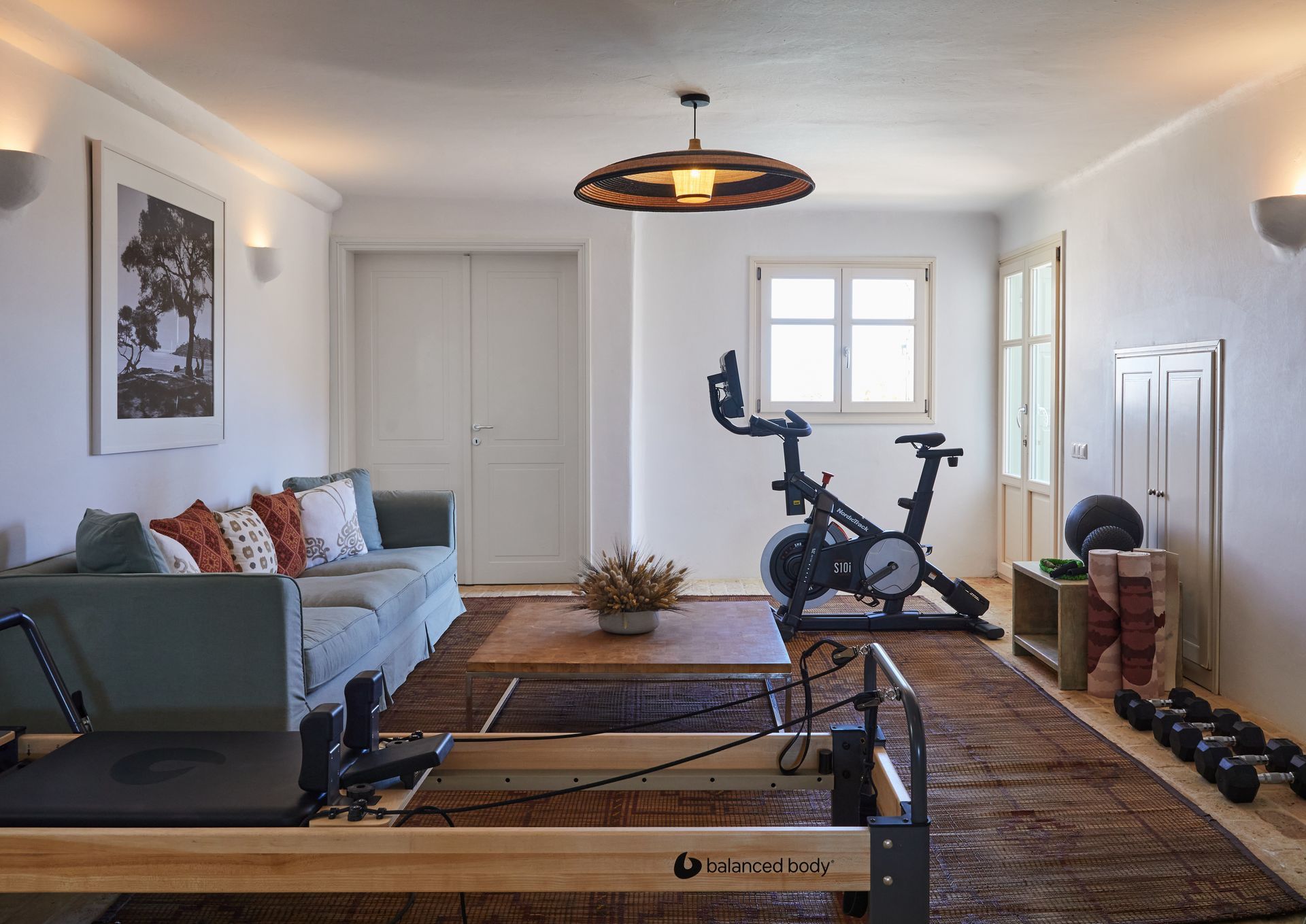 Lounge with gym equipment