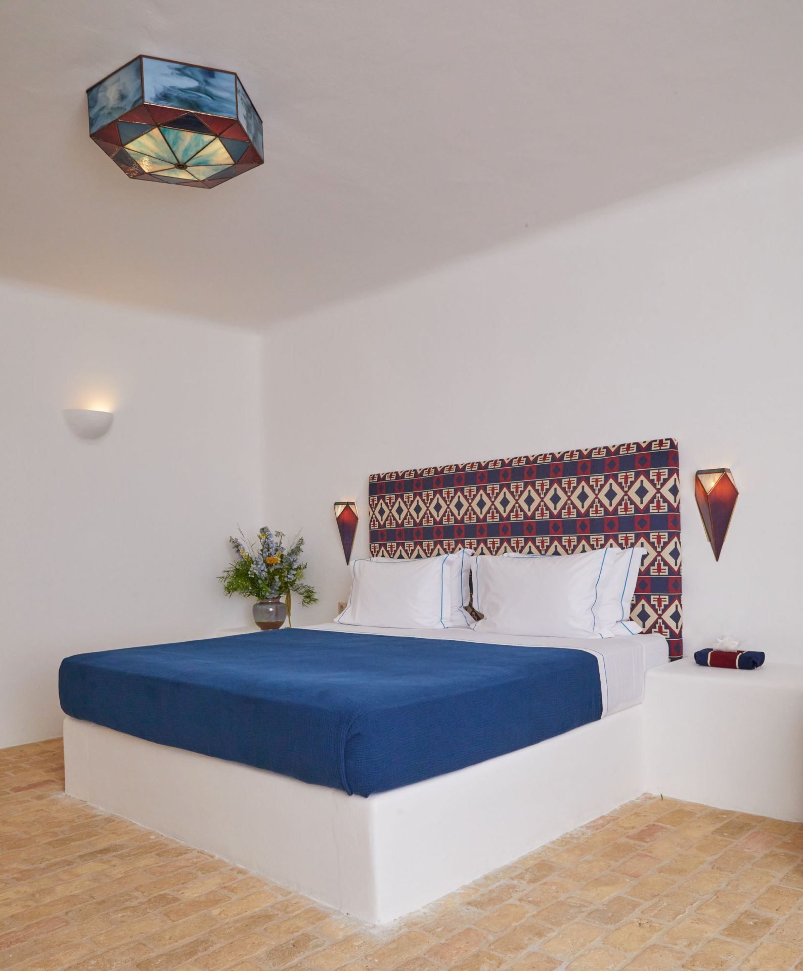 Interiors follow a minimalist Cycladic style, using natural materials, whitewashed finishes, and clean architectural lines. Open-plan living areas connect seamlessly to outdoor spaces, enhancing the indoor–outdoor flow. The villa features a fully equipped kitchen, suitable for daily use or private chef service upon request. En-suite bedrooms offer privacy, functionality, and a comfortable retreat for families or groups.
