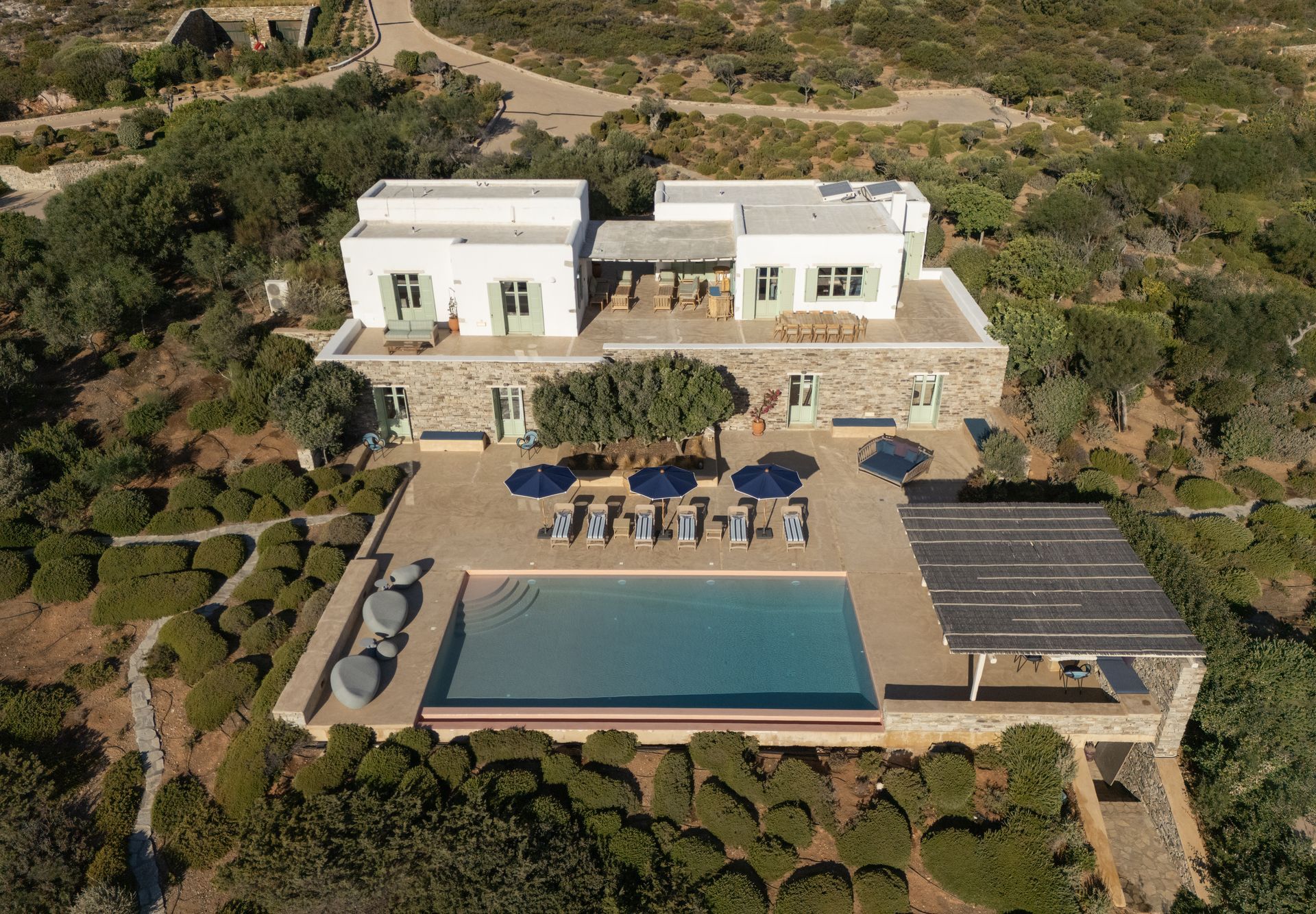 Thanks to its close proximity to Paros, just a 10-minute ferry ride from Antiparos port, guests can easily explore Paros’ attractions, including additional beaches, local restaurants, and vibrant nightlife. The estate also serves as an ideal base for private boat tours, sailing trips, and yachting excursions across the Cyclades, offering opportunities to discover hidden coves, neighboring islands, and crystal-clear waters. This easy connection ensures the perfect balance between tranquil island living and access to diverse experiences.