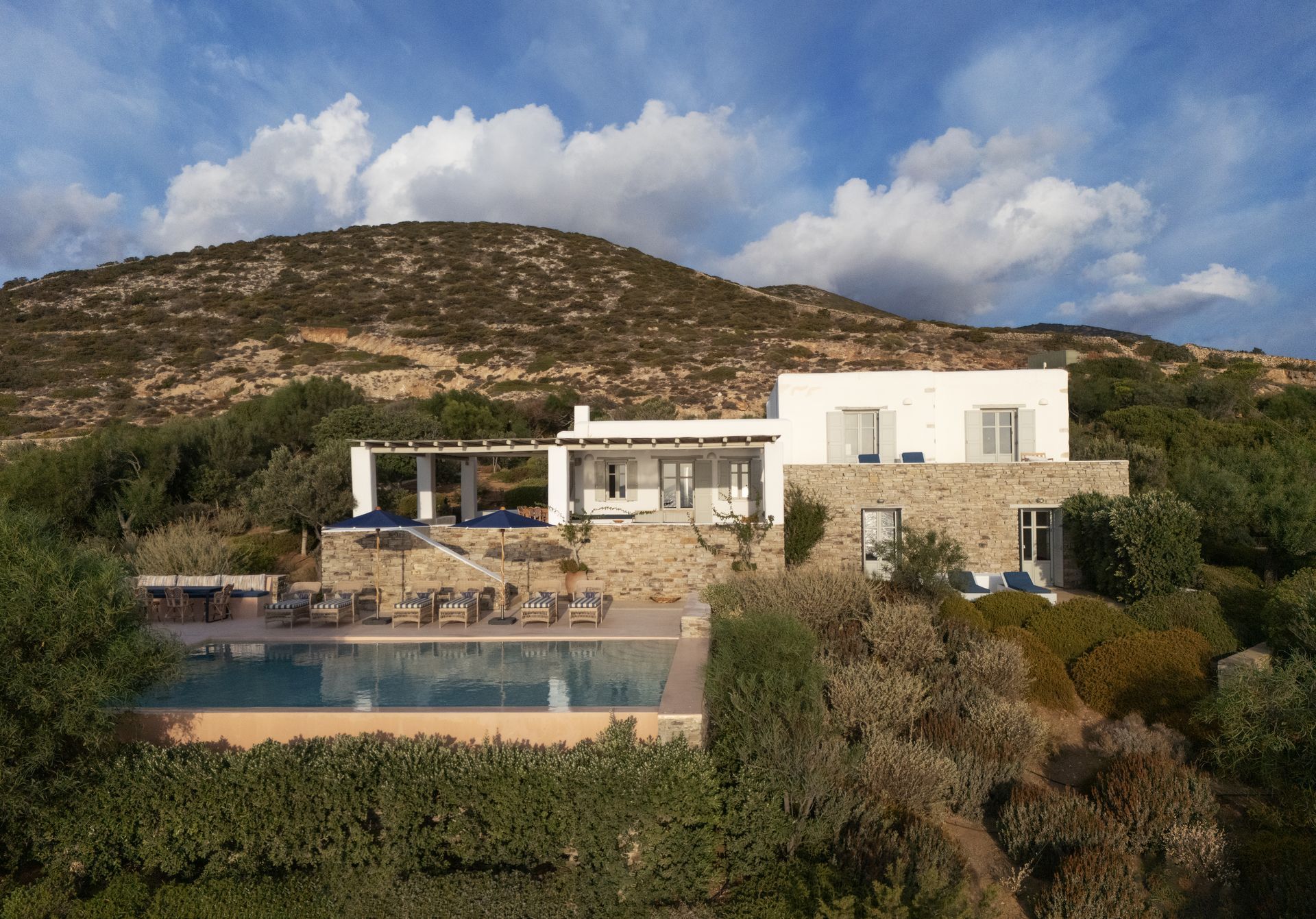 Villa Aqua Mare in Antiparos is a luxurious private estate within an exclusive complex, offering a serene retreat for guests seeking privacy, comfort, and uninterrupted sea views. Spanning 250 m², the villa accommodates up to 10 guests across 5 beautifully designed bedrooms with en suite bathrooms, making it ideal for families or groups of friends. Combining contemporary Cycladic architecture with light-filled spaces and carefully chosen details, Aqua Mare provides a calm and welcoming environment where guests can fully relax.