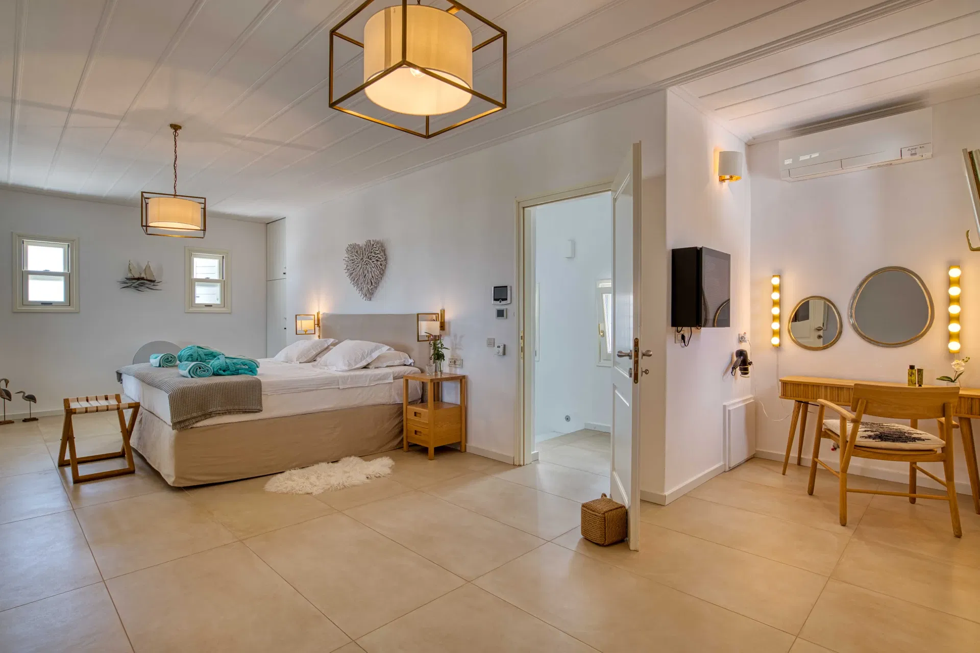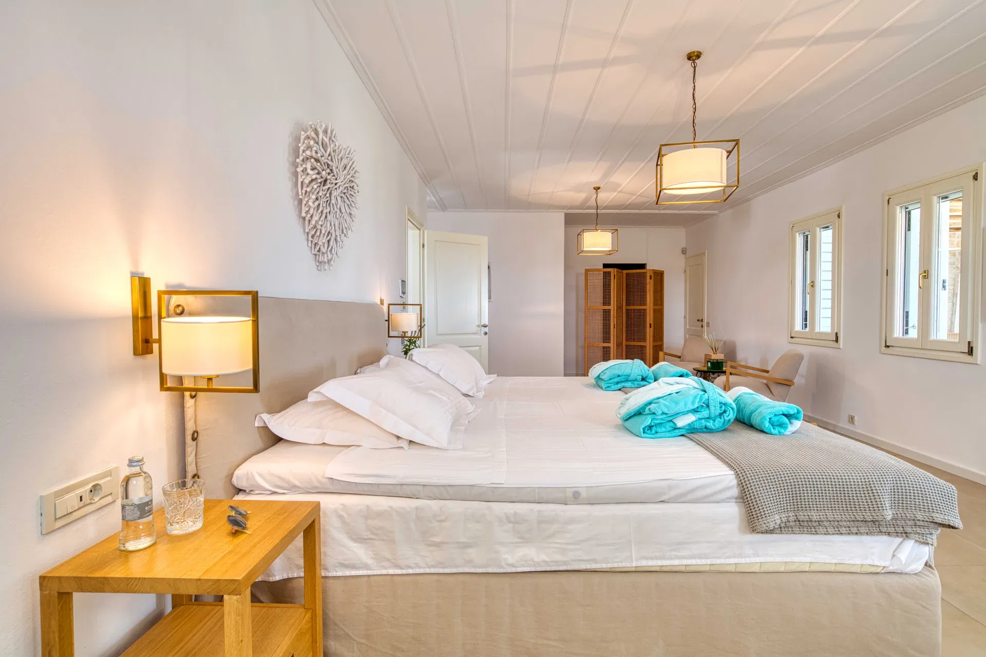 Location is one of Paros Villa Estelle greatest assets: just a few meters from the famous beach Kolympithres and a 5-minute walk from the picturesque Naousa harbor, guests have easy access to top restaurants, bars, and local shops. The island’s main port at Parikia and Paros Airport are also within convenient driving distance. With its combination of elegant design, premium amenities, and a prime location near both the sea and Naousa’s charm, Paros Villa Estelle promises a luxurious and memorable stay in Paros.
