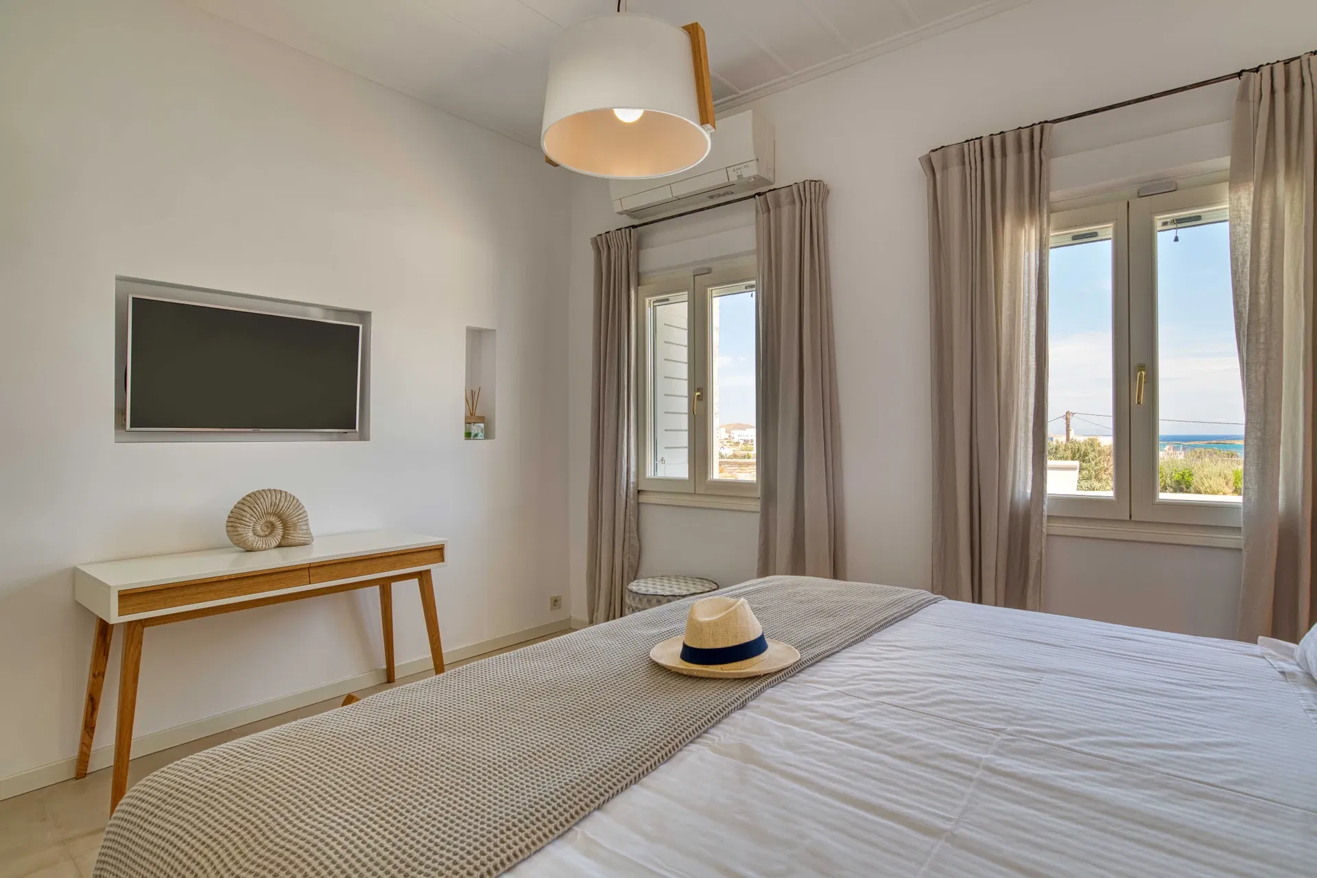 The surrounding area is a paradise for beach lovers. Pristine sandy beaches such as Monastiri, Kolymbithres, and Santa Maria are just a short drive away, offering crystal-clear waters and a variety of watersports. For those who enjoy culture and local experiences, Naousa also hosts art galleries, charming local markets, and seasonal festivals, giving a true taste of Parian life.