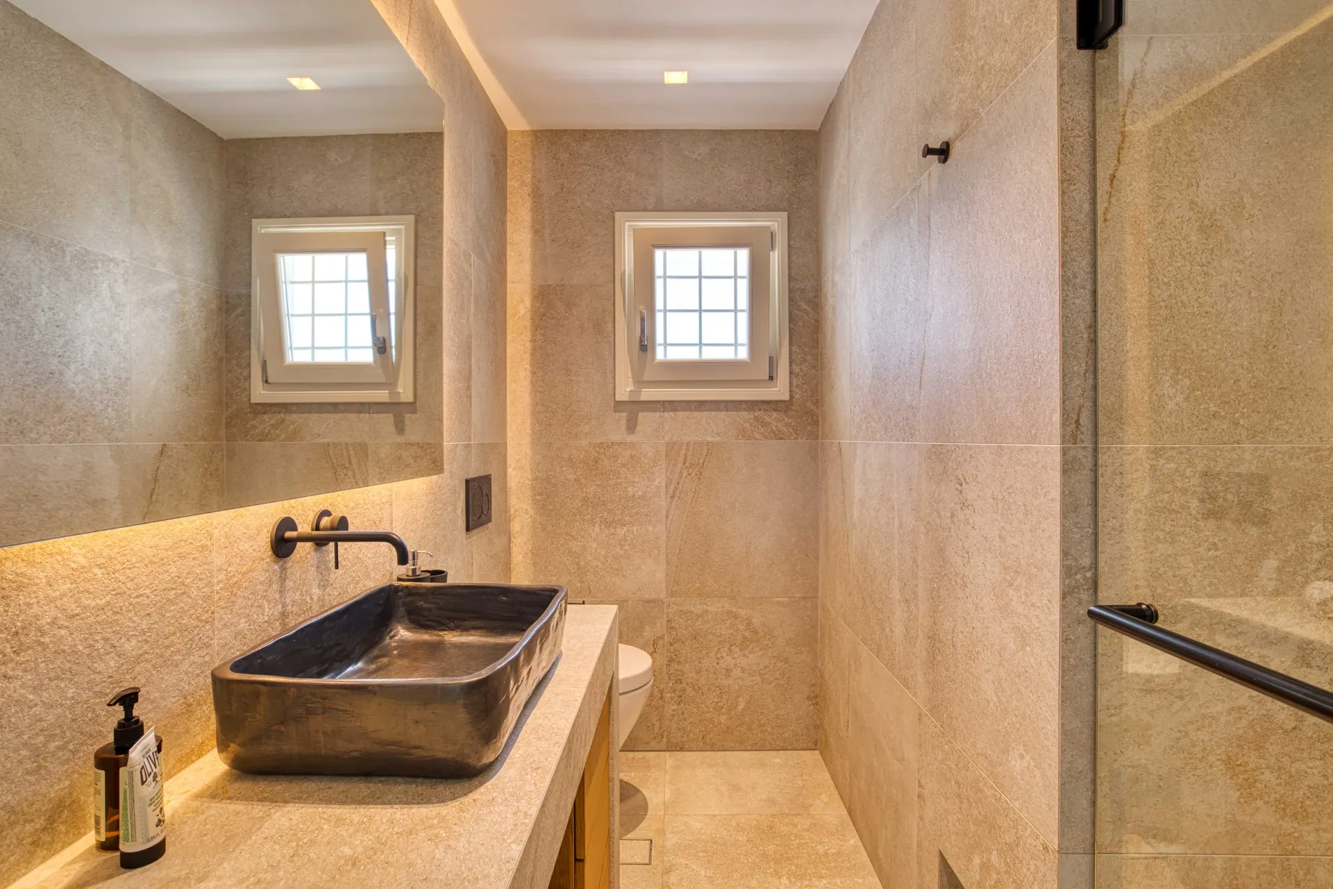 Stepping inside, the villa reveals a bright and comfortable layout where indoor and outdoor areas flow naturally into one another. Villa Estelle features five master bedrooms, each offering generous space and privacy, making it well suited for families or groups of friends traveling together. The design emphasizes comfort and functionality, ensuring a relaxed and welcoming atmosphere throughout the home. The interior also includes a fully equipped private gym, allowing guests to keep up with their fitness routine during their stay.