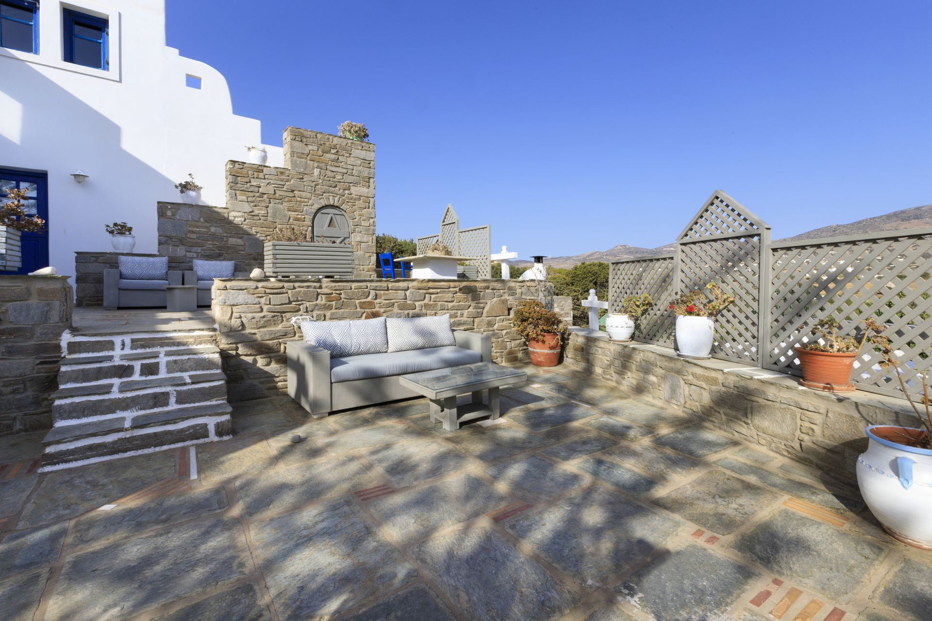 Just a short drive from Mare Villa, the quaint village of Dryos provides a glimpse into local island life, where whitewashed alleys and friendly local spots add charm to every visit. The area’s waterfront is ideal for both swimming and seaside strolls, with crystal-clear waters and shaded coves for quiet moments by the sea. Whether you’re exploring the local beaches or venturing to other parts of the island, Mare Villa’s location makes it a perfect base for discovering the best of Paros, from lively markets to scenic trails and historic landmarks.
