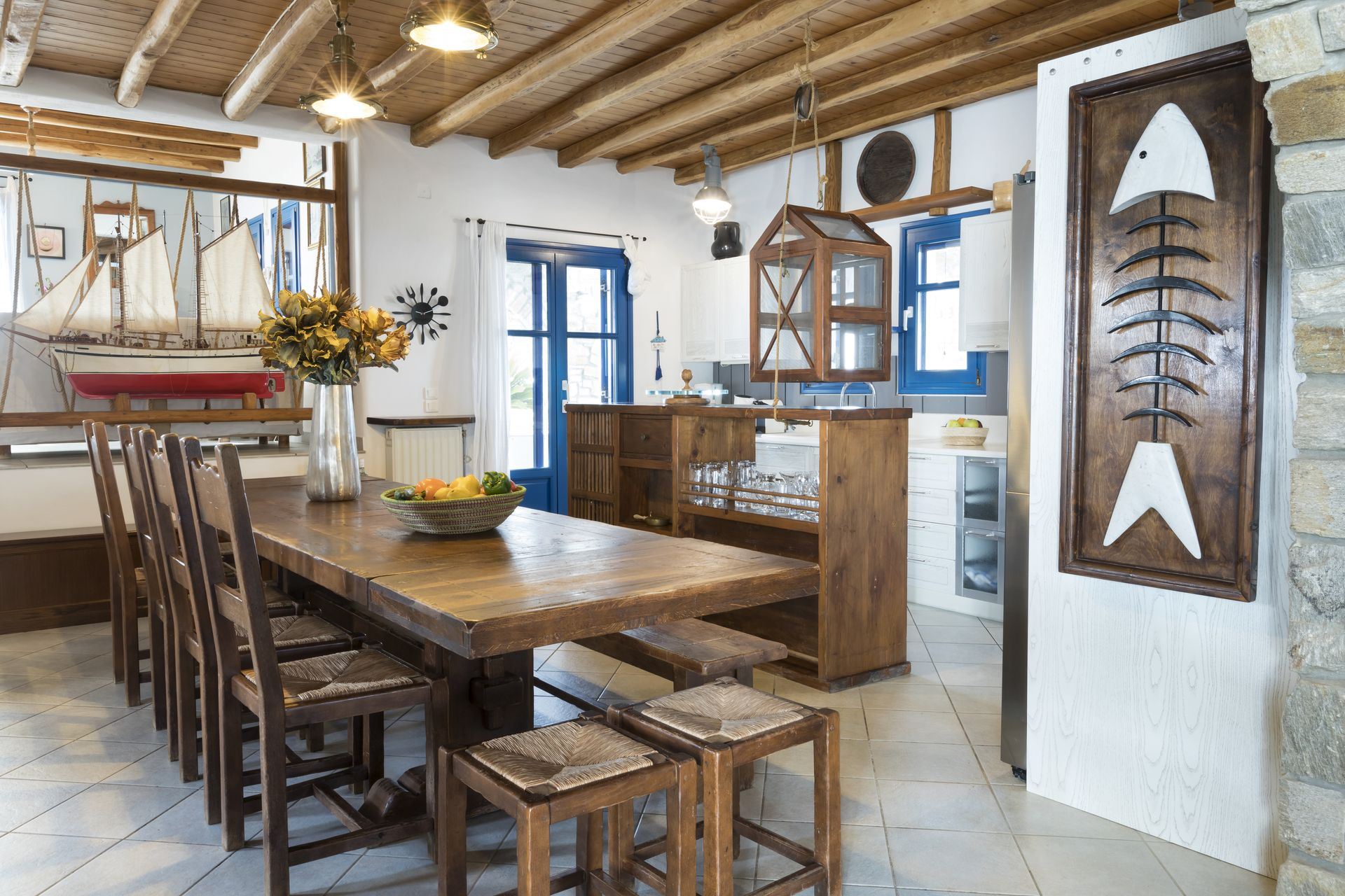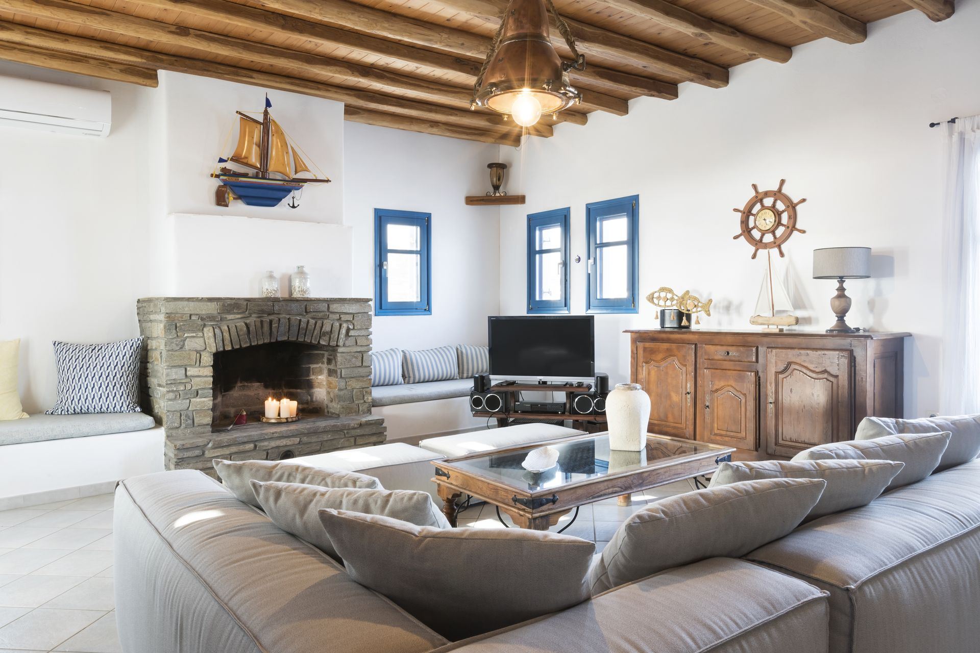 Accommodating up to 12 guests, Mare Villa features five elegantly designed bedrooms, each with its own en-suite bathroom. Spacious living and dining areas, a fully equipped kitchen, and carefully selected decor provide a welcoming ambience, with an open-plan layout that enhances the villa’s airy, sunlit interiors. High-speed Wi-Fi, air conditioning, central heating, and satellite television offer all the comforts of modern living, while large windows frame captivating sea views and bring in abundant natural light.