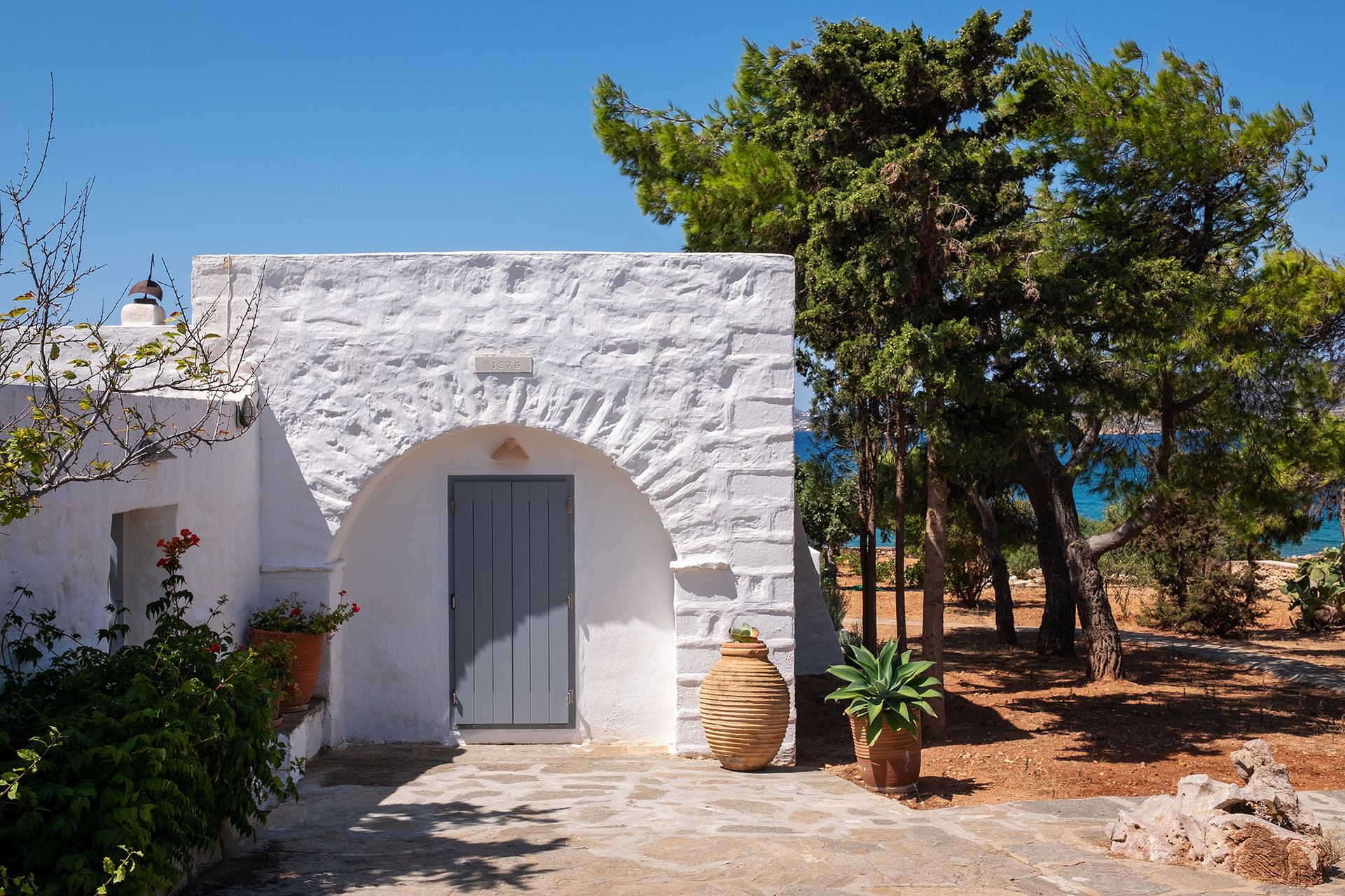 Thanks to its privileged seafront location, guests enjoy breathtaking views of the Aegean Sea and direct access to the crystal-clear waters, creating a perfect backdrop for a relaxing escape. Surrounded by natural beauty and just a short drive from the charming villages of Alyki and Parikia, Villa Mythical in Paros offers the best of both worlds: peaceful seclusion and easy access to local life.