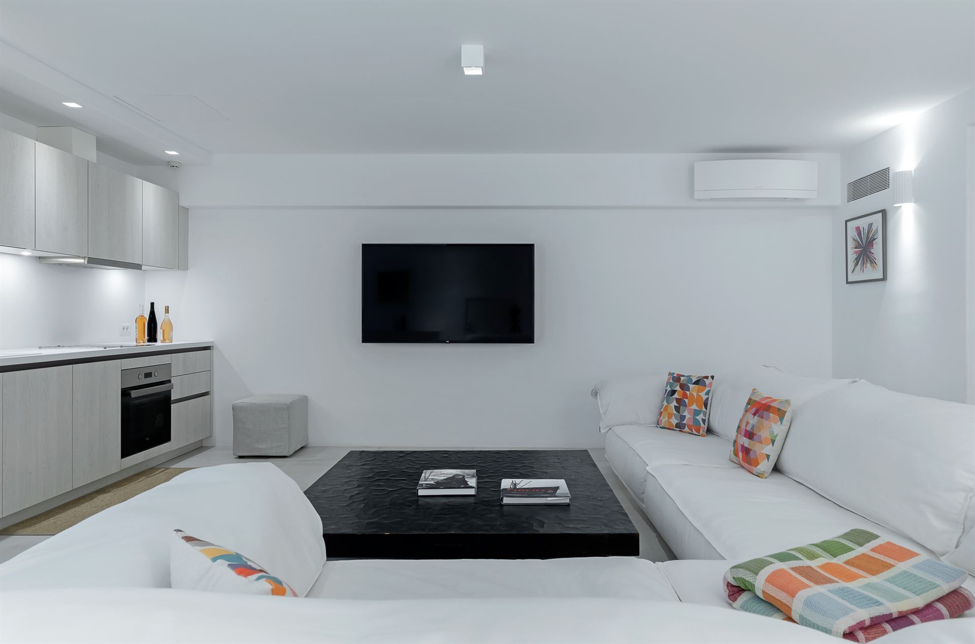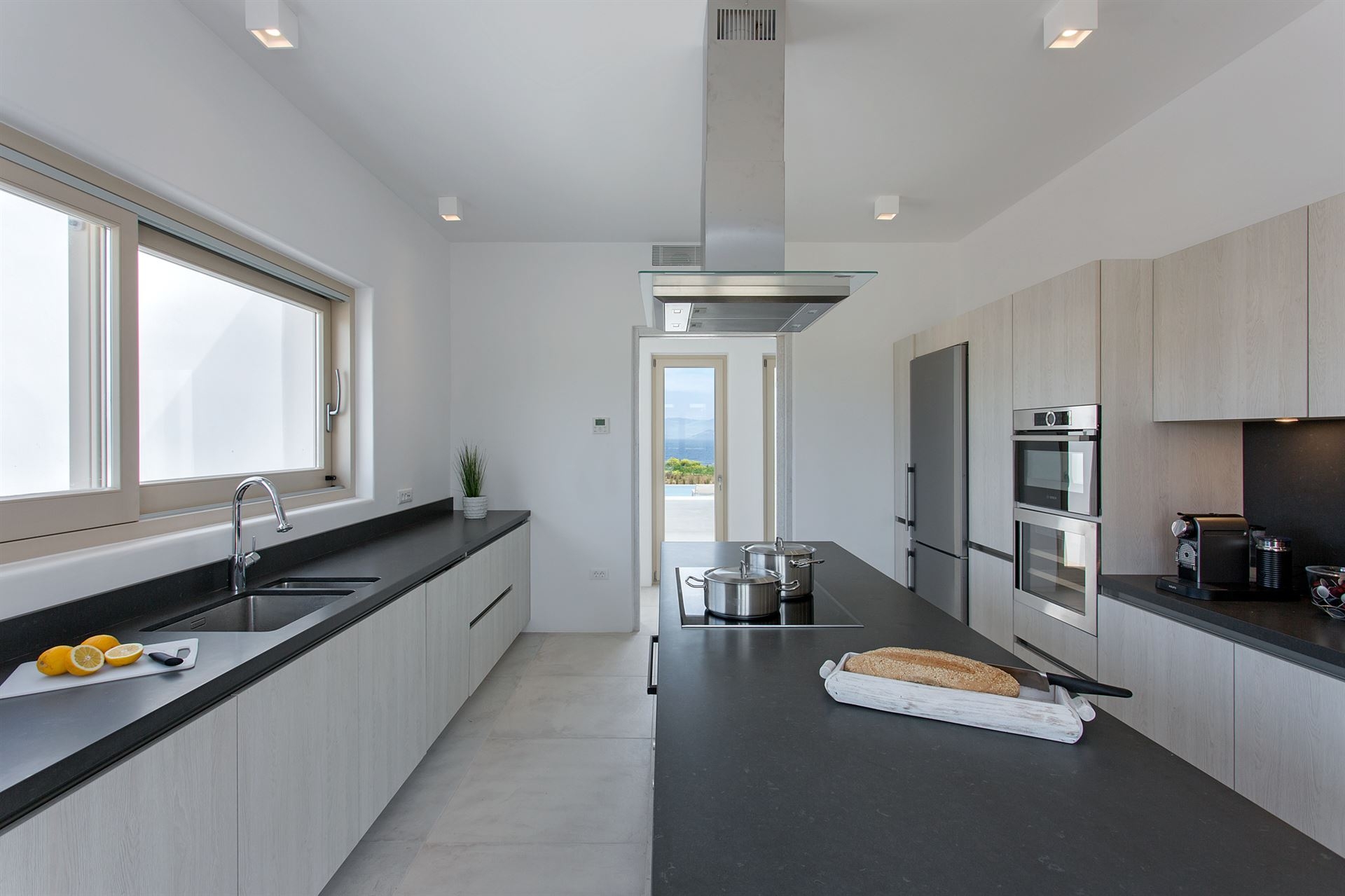 Step outside onto the expansive terrace to experience the Mediterranean’s allure. The private infinity pool offers a refreshing oasis. Enjoy sun-drenched days and unforgettable evenings under the stars. Relax with a cocktail in hand as you watch the sunset paint the sky. The villa’s kitchen is a culinary delight, equipped with state-of-the-art appliances and a sleek design. Dine al fresco in the shaded outdoor area, where the gentle sea breeze enhances every meal.
