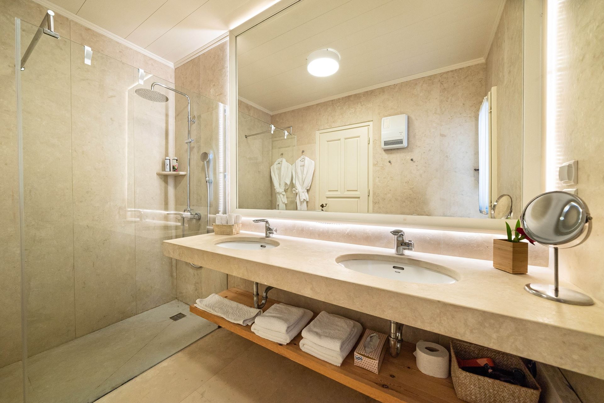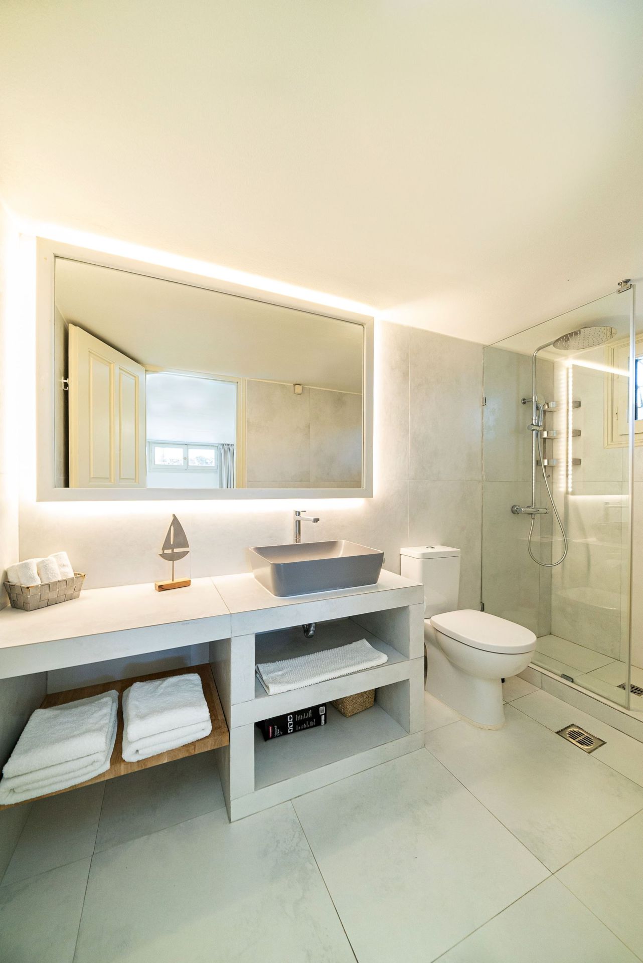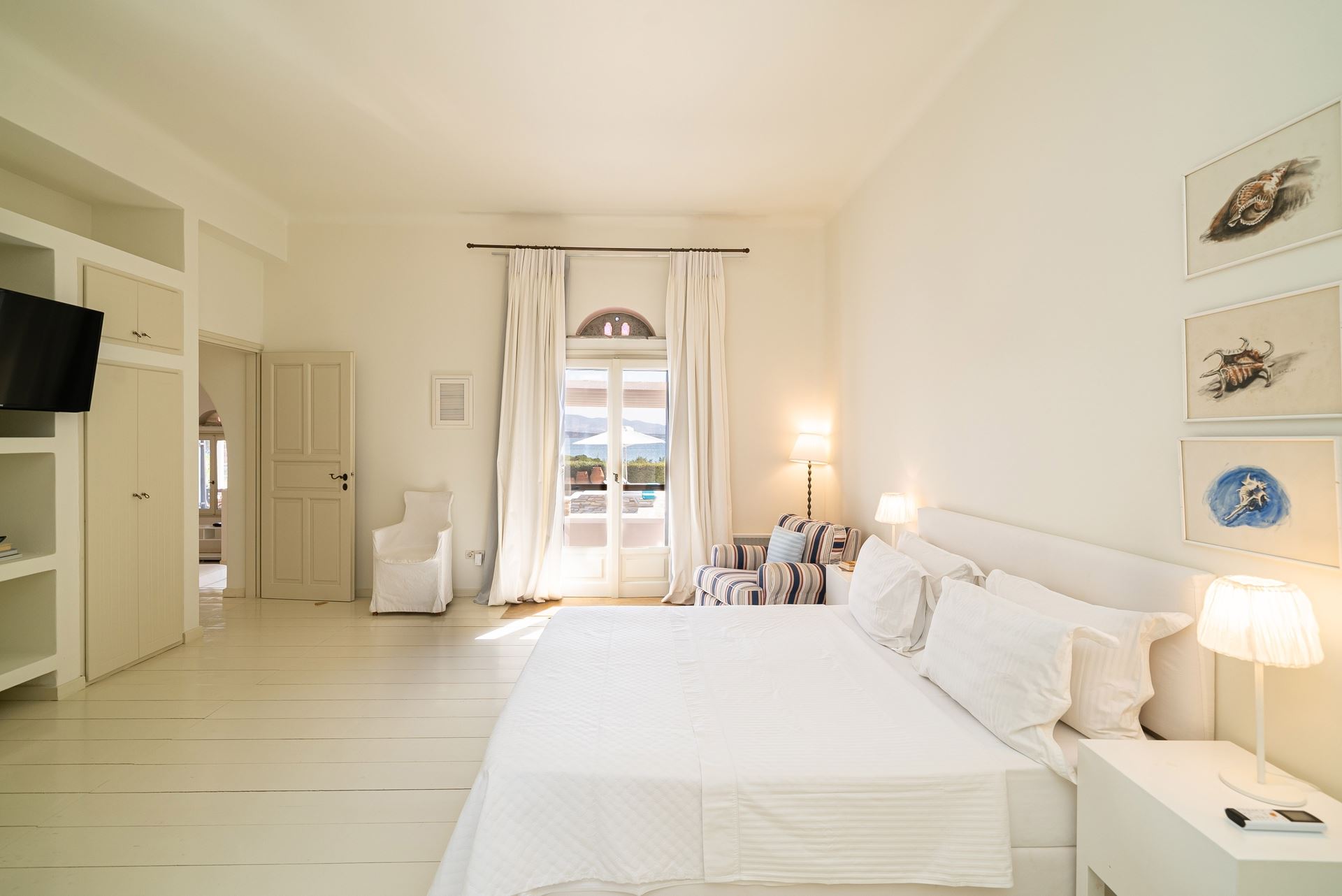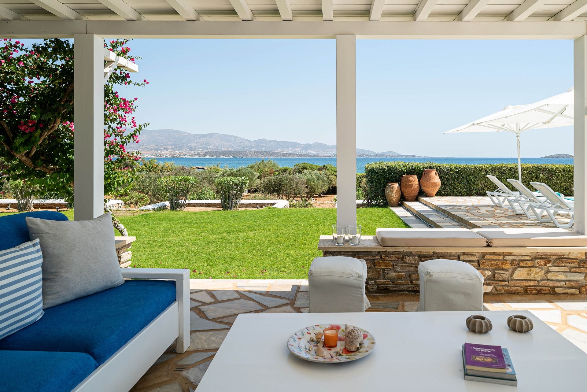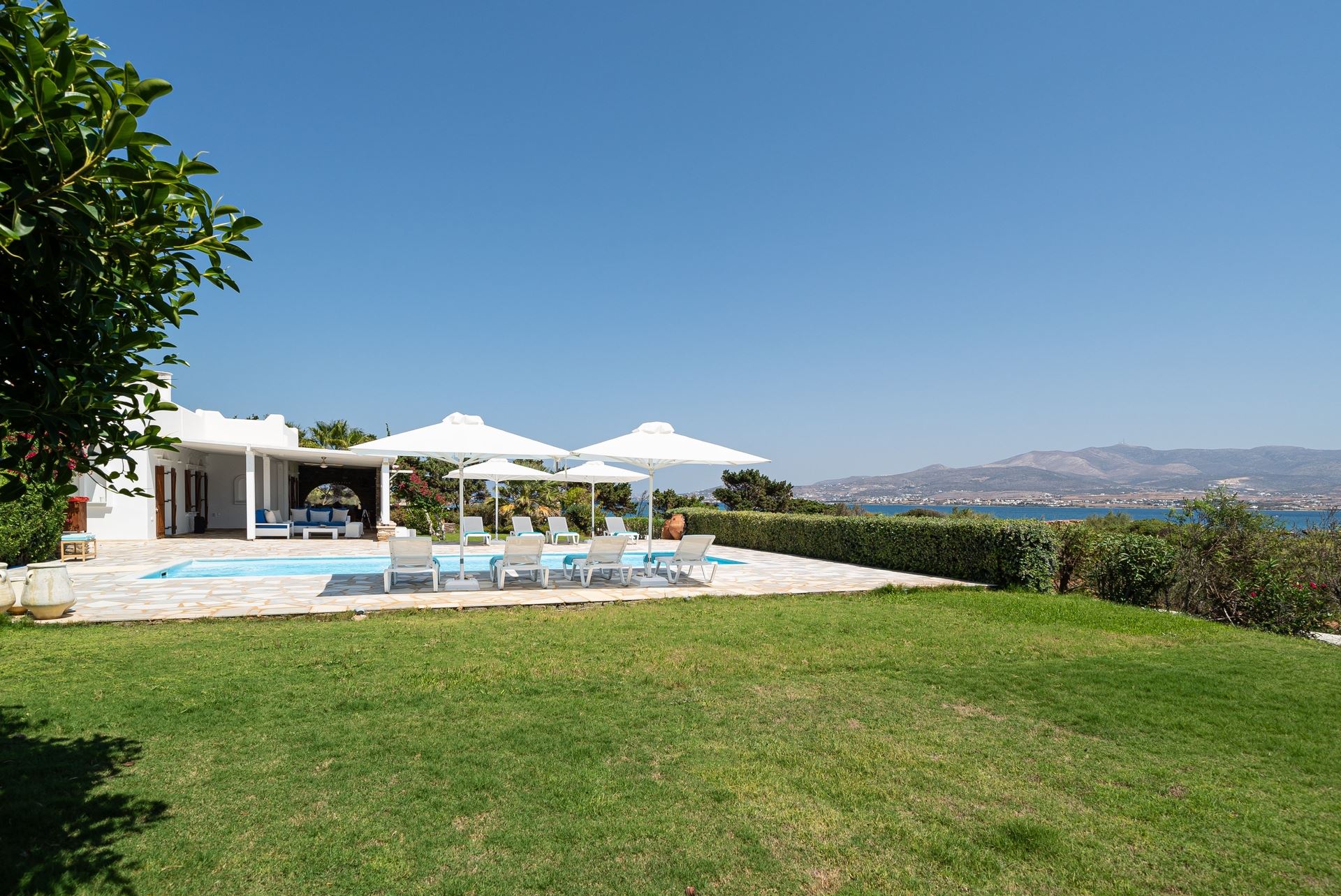 The outdoor spaces are designed for ultimate relaxation. A manicured lawn frames the large pool area. Moreover, sunbathing areas and spacious shaded verandas blend effortlessly with the surrounding nature. The unobstructed sea views set the perfect scene for alfresco dining and sunset gatherings.