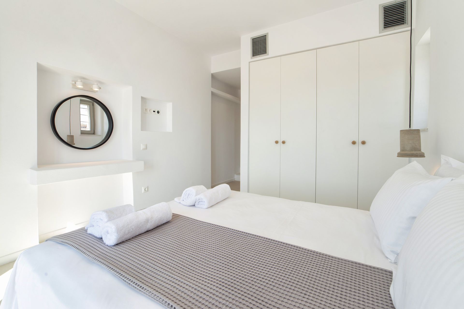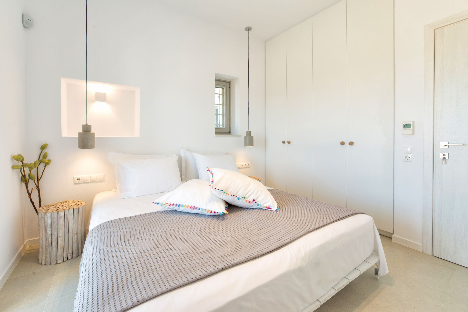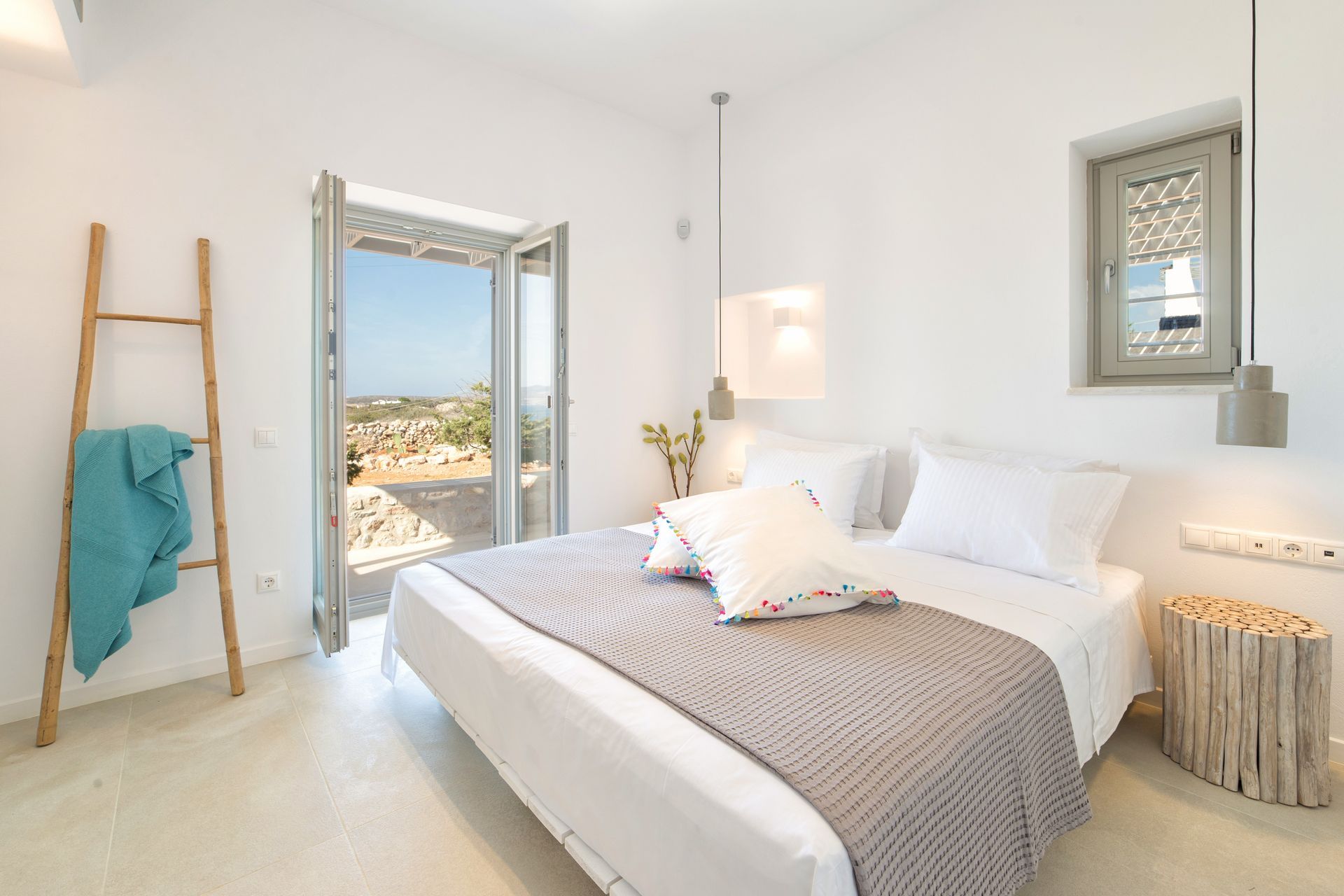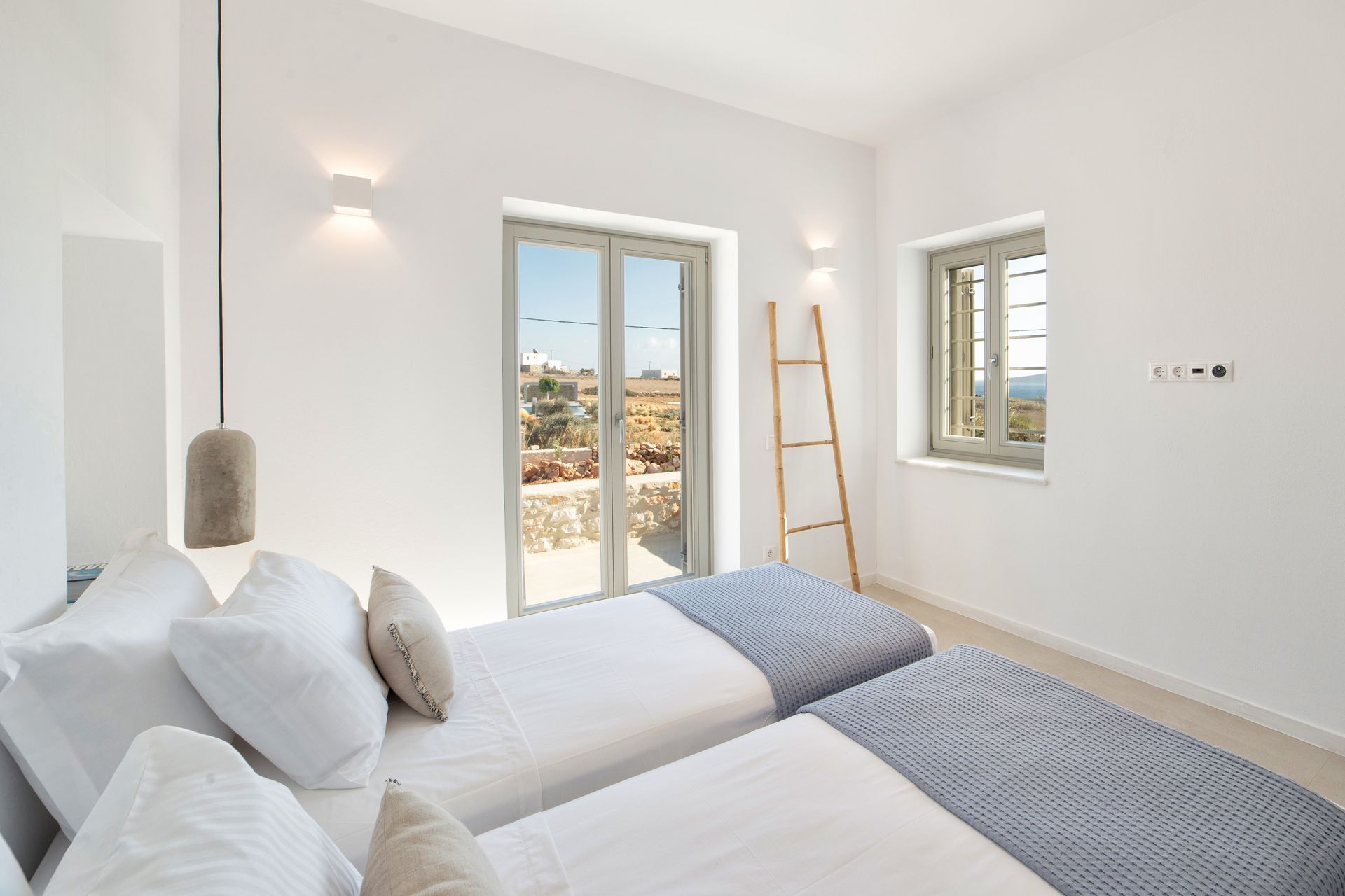 Accommodating up to 10 guests, Villa Petra in Paros is an idyllic retreat for those seeking privacy and serenity. The upper level features four spacious double bedrooms, each thoughtfully designed with built-in closets and private terraces that offer a sense of connection to the island’s natural beauty.