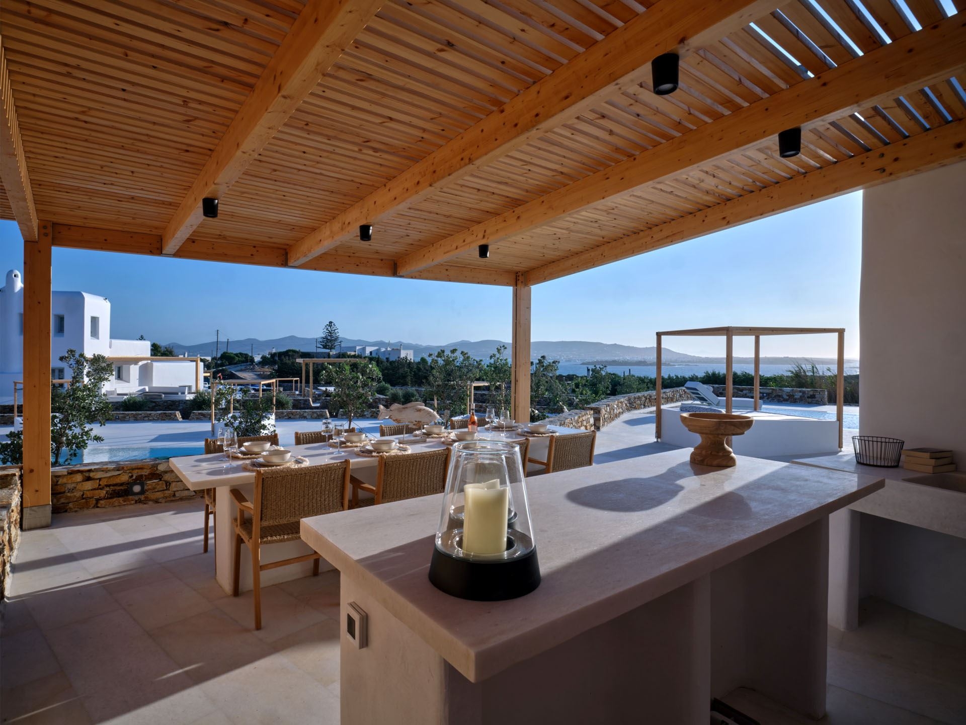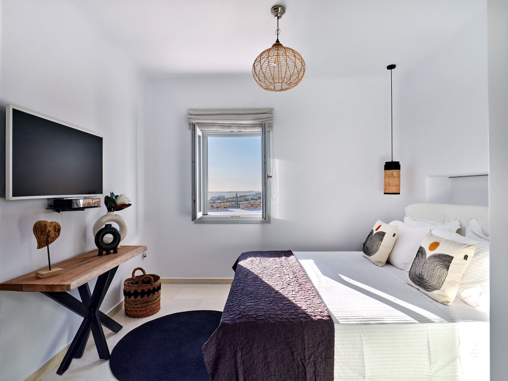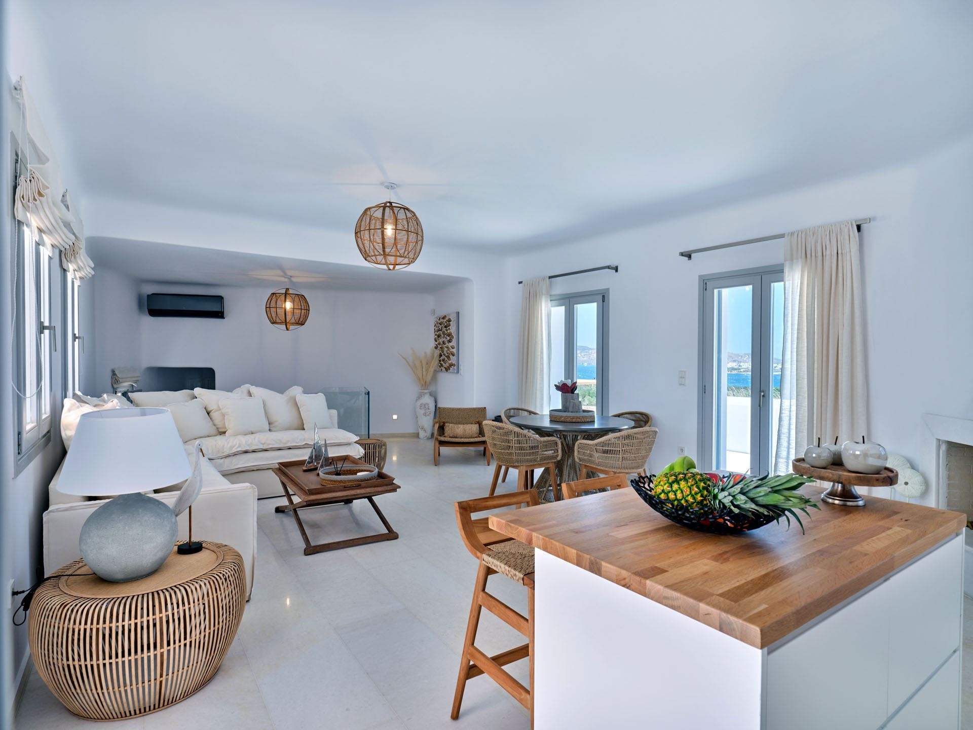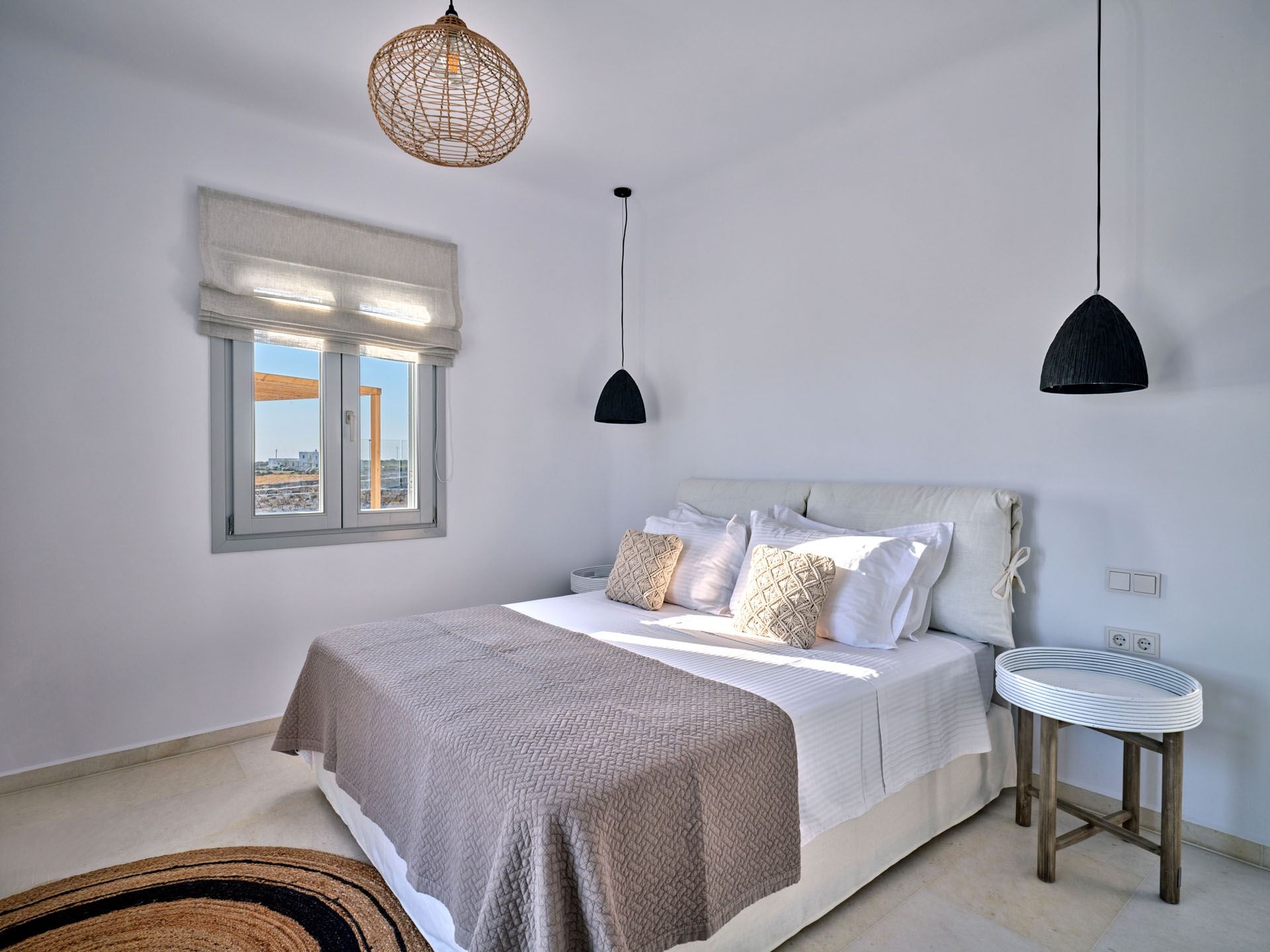 This upscale Paros rental features three spacious bedrooms, each crafted as a serene personal retreat. En suite bathrooms elevate the sense of privacy and convenience, offering a truly pampering experience.