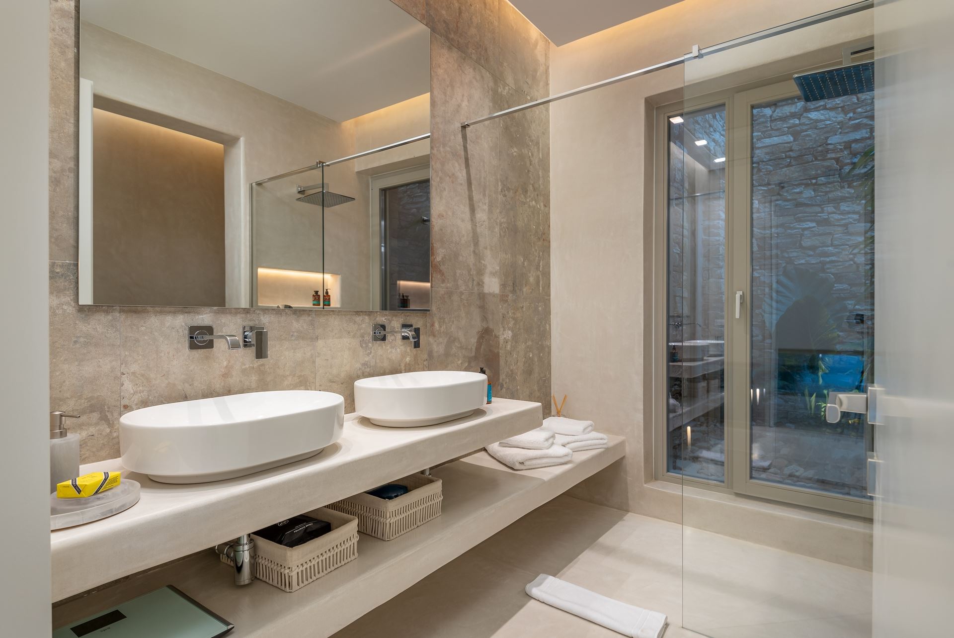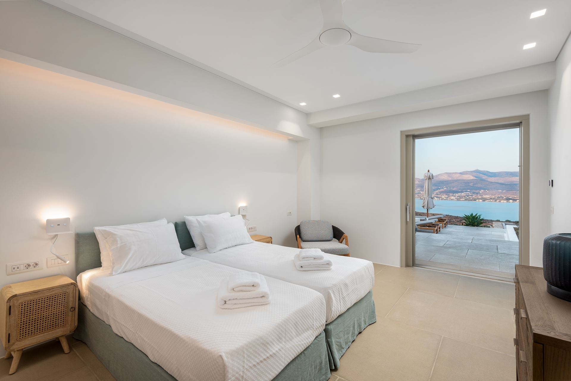 Two bedrooms with double beds, en suite bathrooms with access to private terrace, private swimming pool, sea view