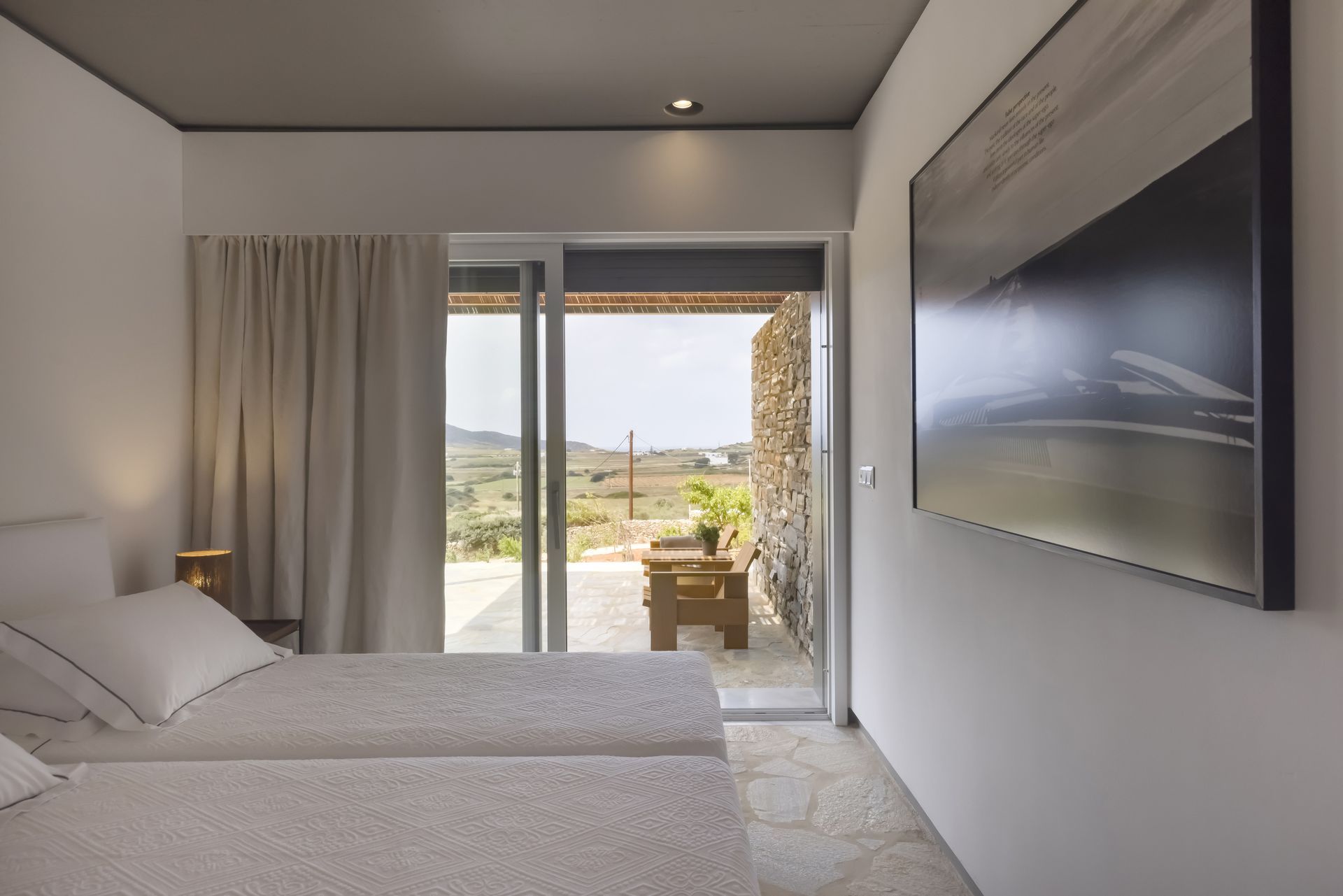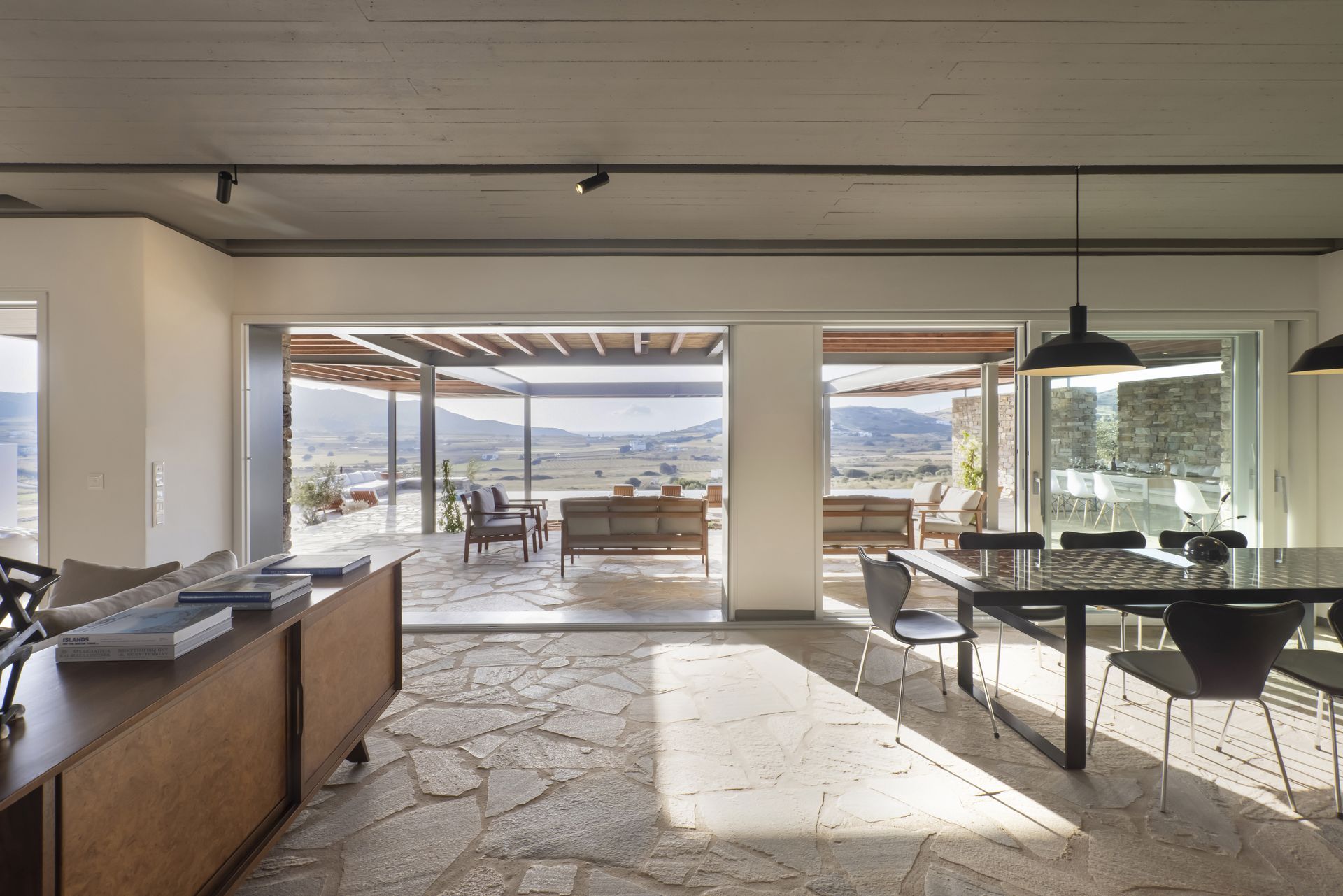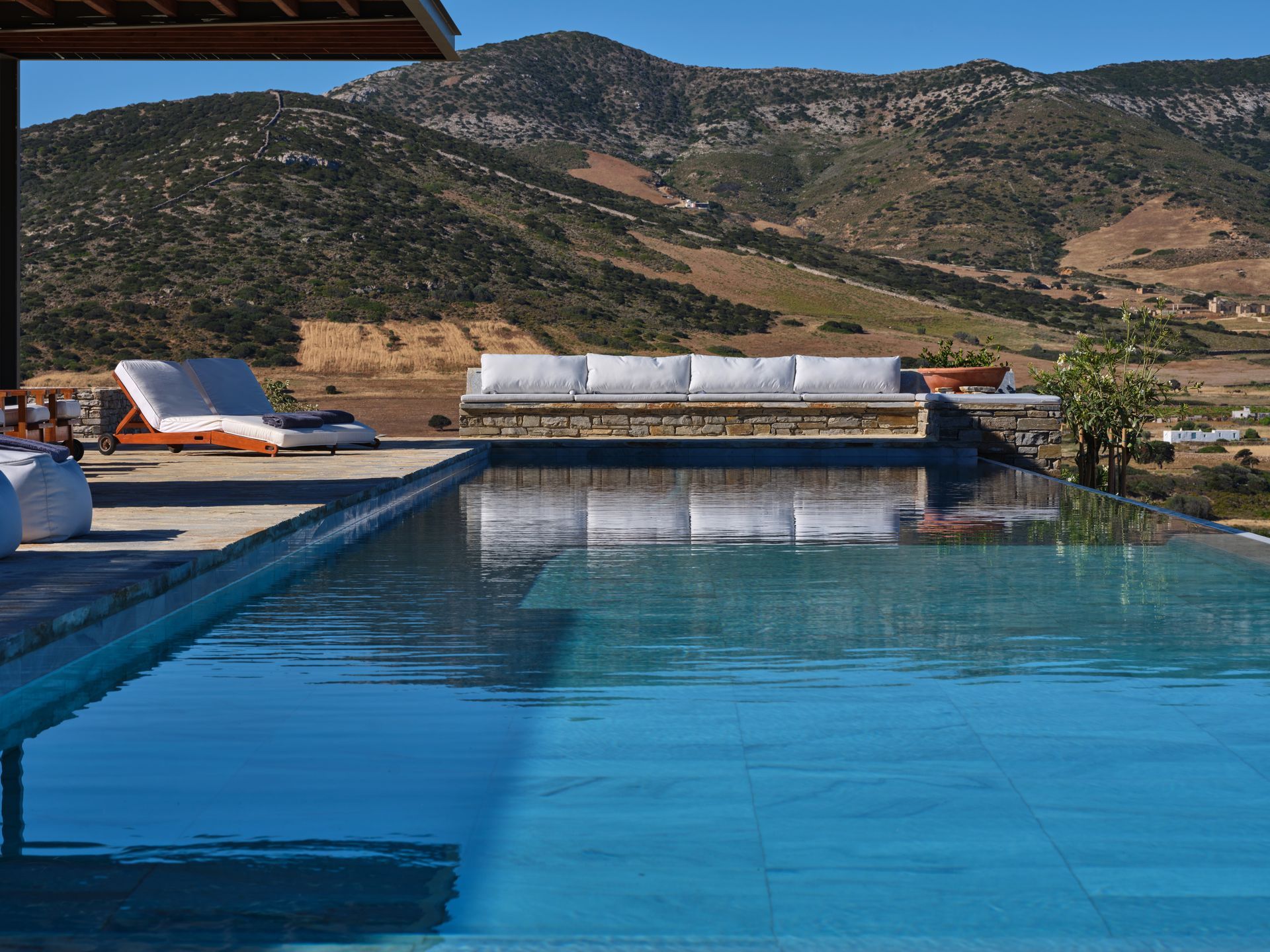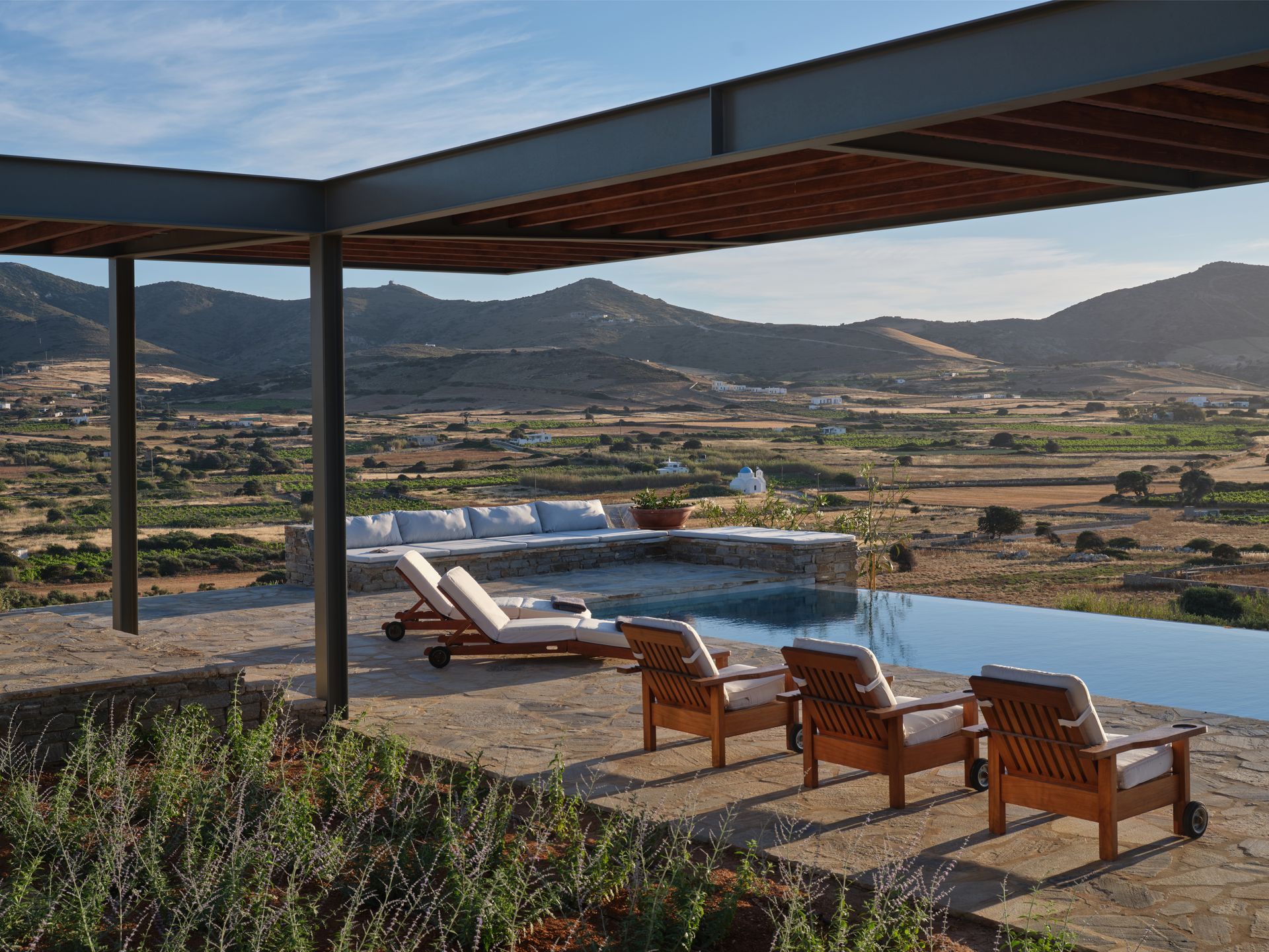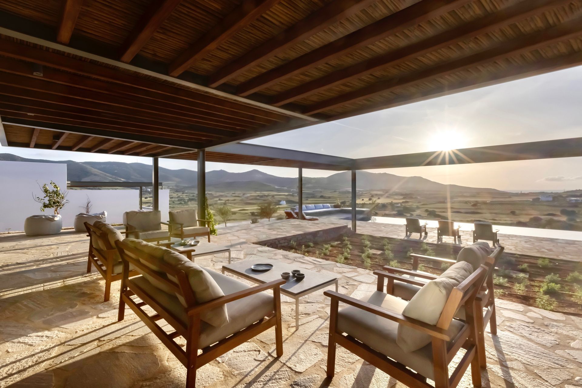 Villa Zen for rent in Antiparos offers an exceptional blend of luxury, privacy, and also natural beauty. Nestled in the peaceful Kambos area, this 340 square-meter villa provides a perfect escape. Surrounded by beautiful nature, it offers amazing views of the Antiparos farmers’ valley. Moreover, you can enjoy breathtaking sunsets that paint the sky with vivid colors.