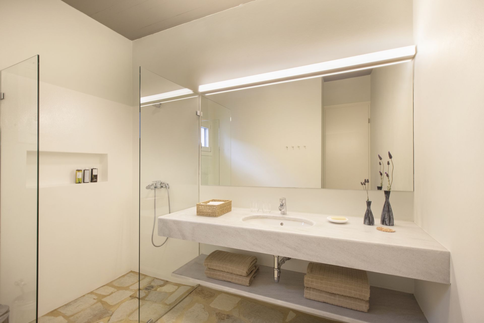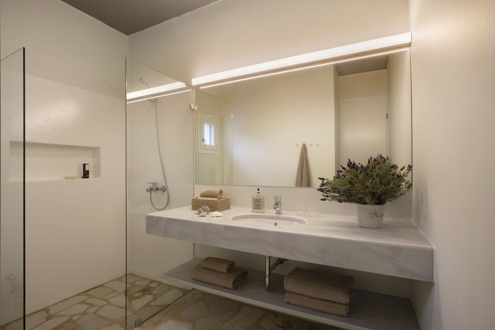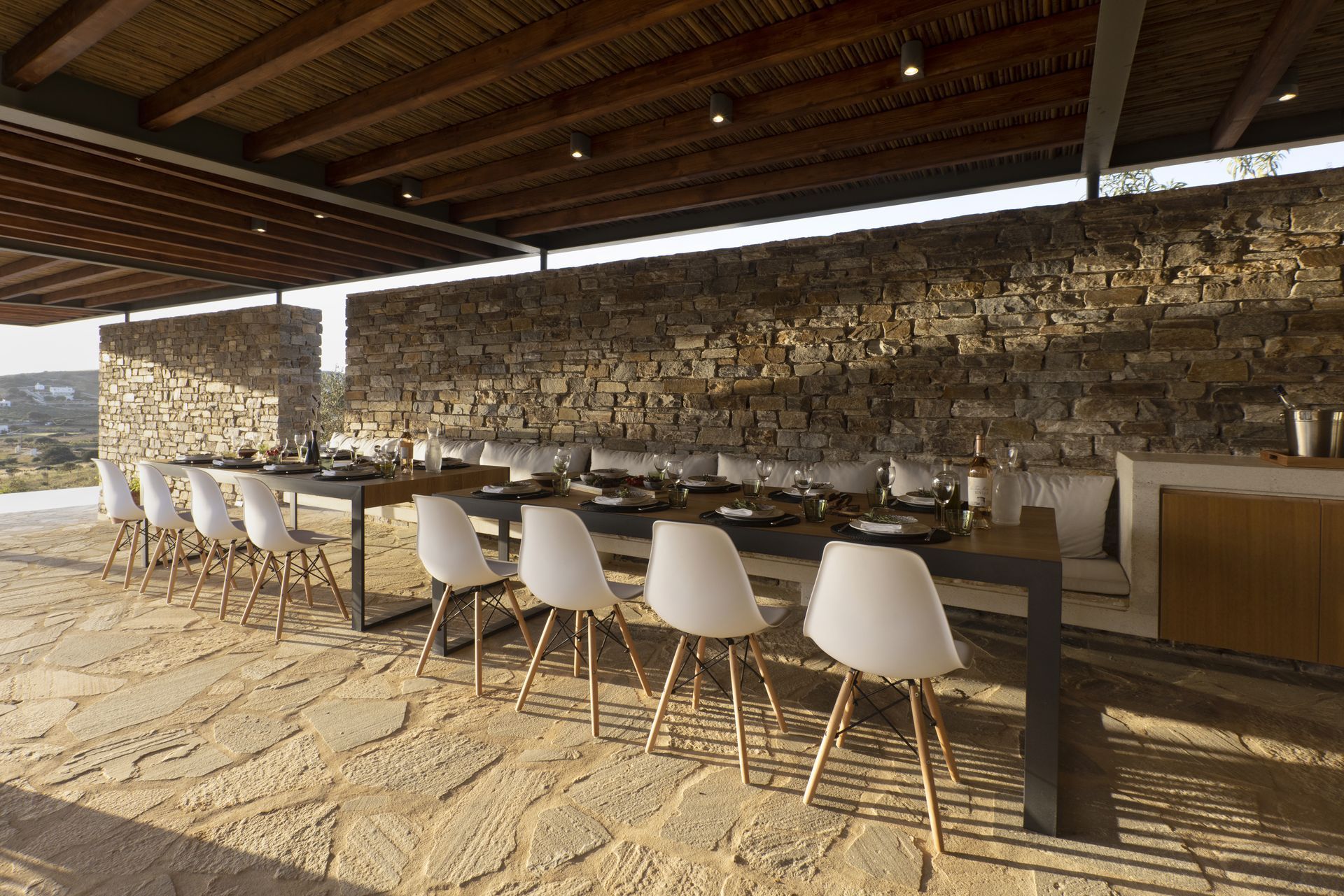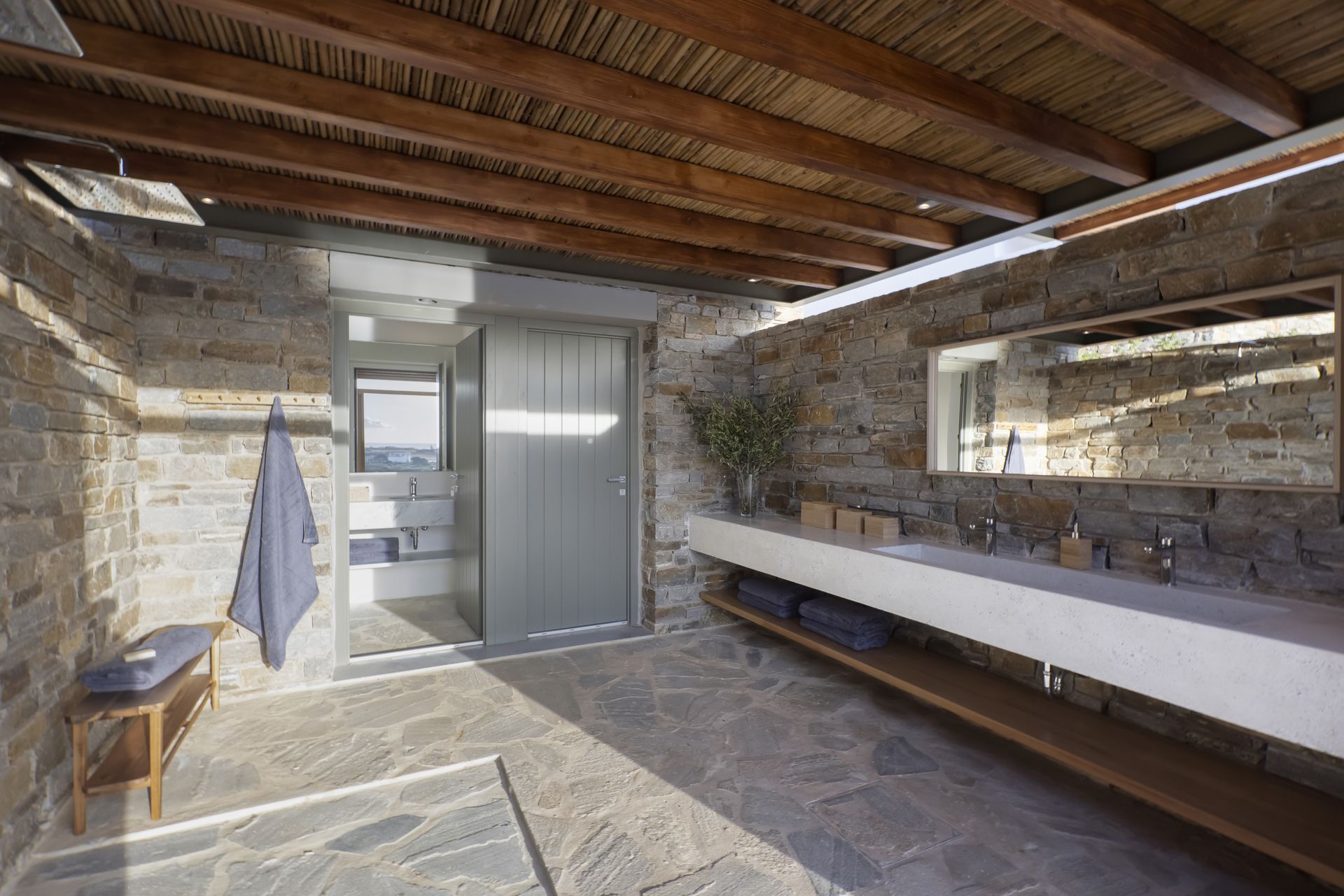 Villa Zen for rent in Antiparos accommodates up to 12 guests, with additional space for 4 more. It has six bedrooms and also two extra rooms, making that every guest feel comfortable. Furthermore, there are six stylish bathrooms, designed for convenience and elegance. The villa’s single level layout allows for smooth transitions between the indoor and outdoor spaces, enhancing the overall experience.